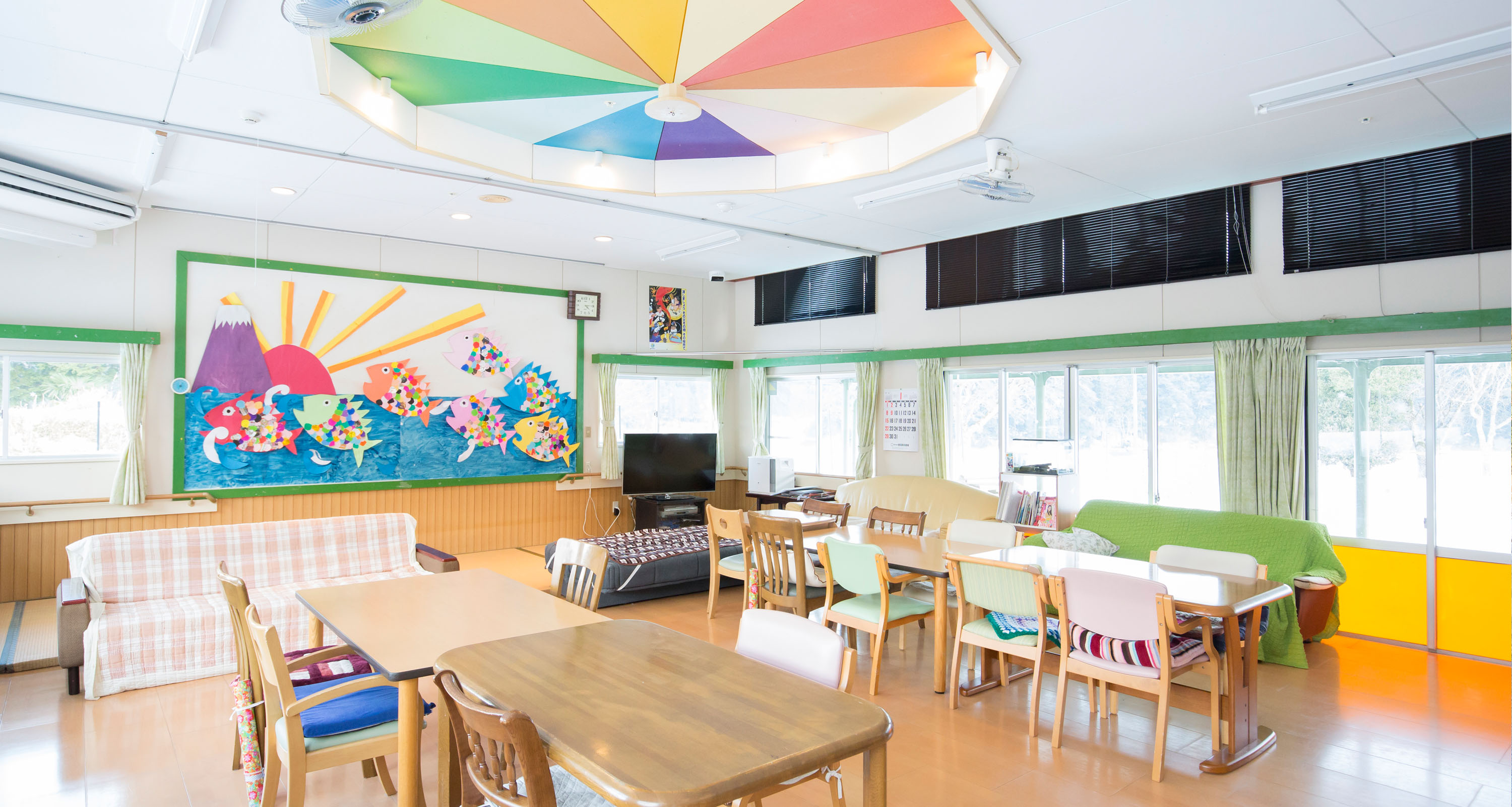 地域の学校跡地で、旧保育所を改修した建物です。施設内は広く心地良い場所でくつろいで頂けます。馴染みのある園庭には桜の木・あけぼの杉・遊具もあり大人から子供まで集える環境です。