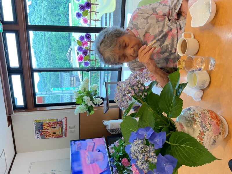 綺麗な紫陽花を見ながらおやつを楽しみました。