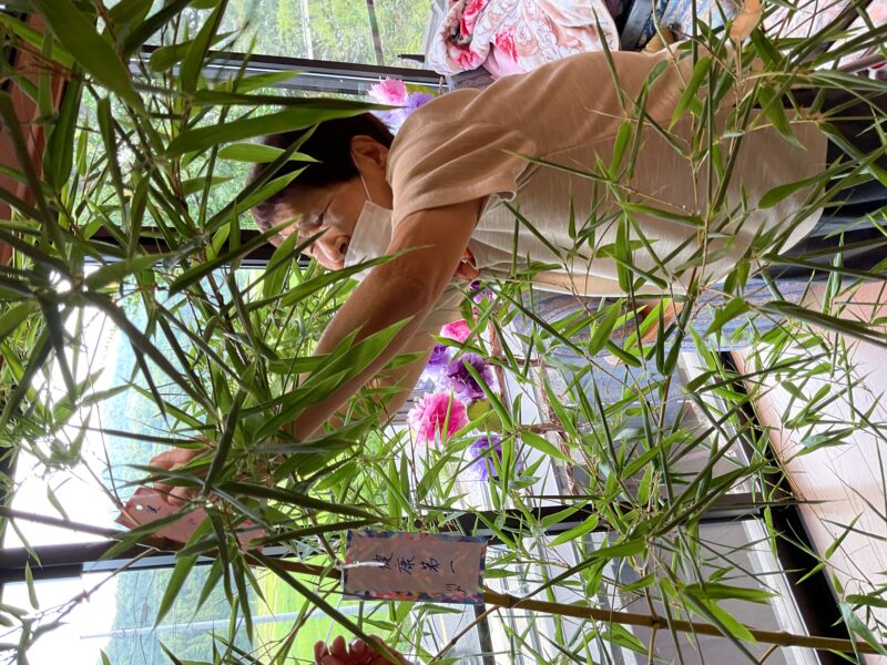 7月は恒例の七夕飾り。短冊にはめいめいに思うこと記されていました。
