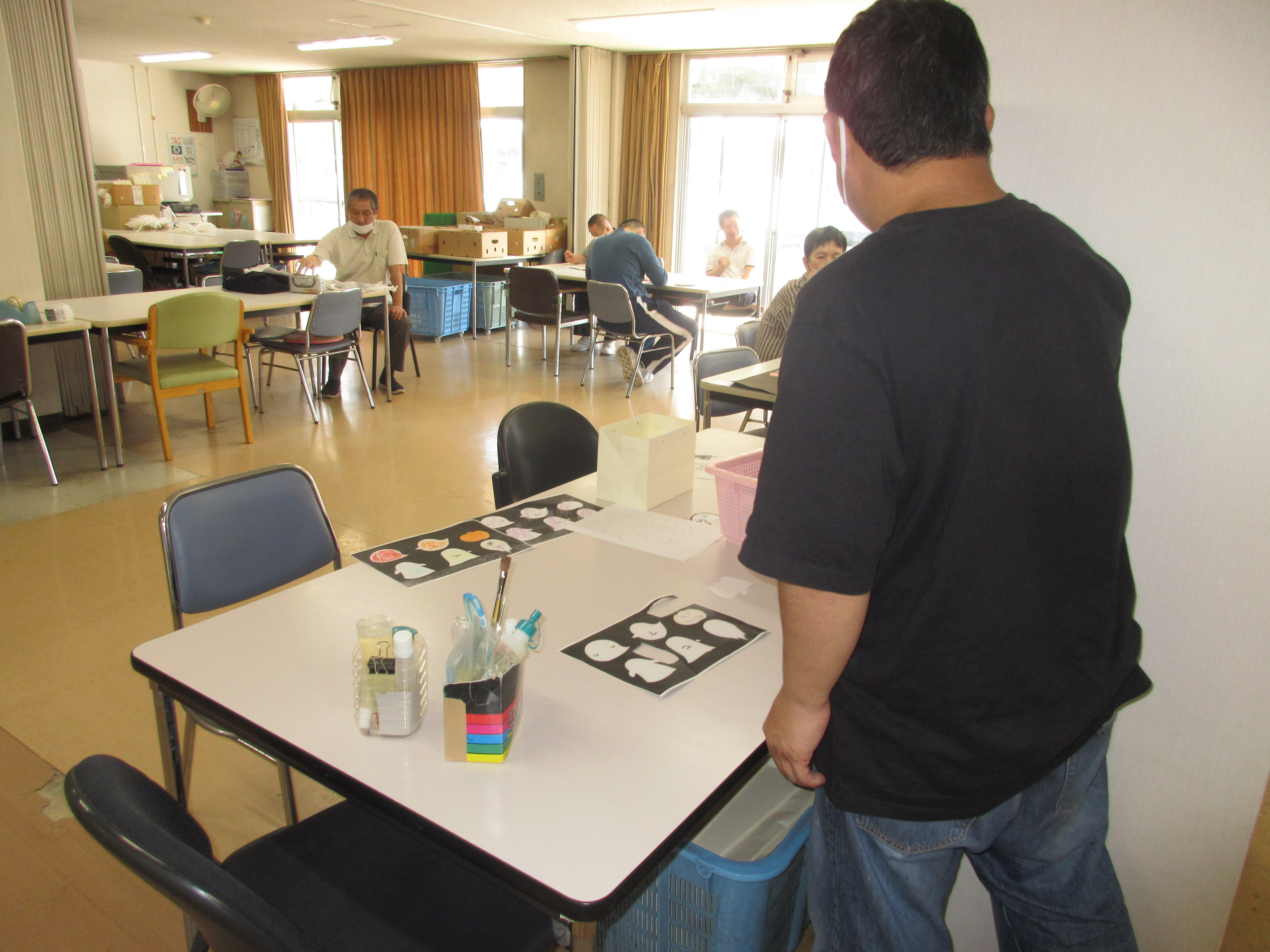 天ヶ瀬ワークスあすなろ 2025.10.10 10月になりグラウンドの使用が解禁になりました。 こんにちは 天ヶ瀬ワークスあすなろです。 気温が少し下がって余暇支援でのグラウンドが使える ようになり、たくさんの仲間でサッカーボールでの野球を 楽しまれました。 室内では、ハロウィンの準備制作をされています。