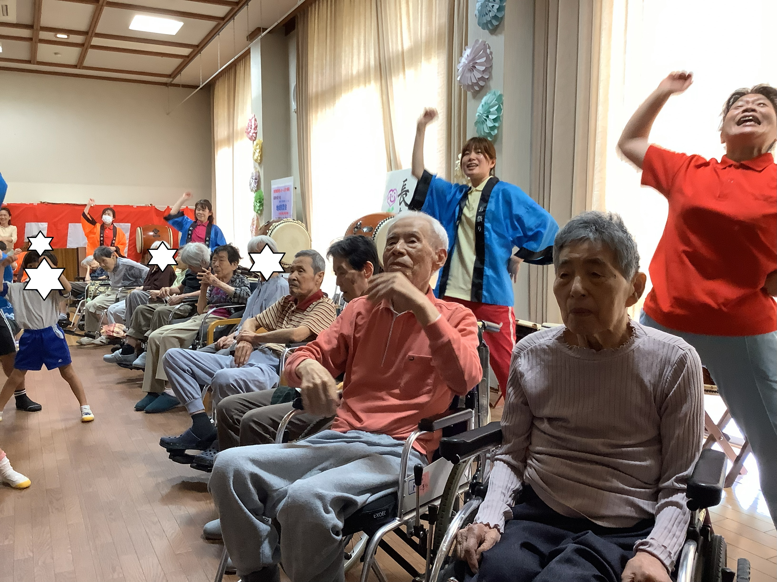 和太鼓や体操、歌、手遊び、フラフープなど・・・盛りだくさんの出し物を準備してきてくれましたよ♪