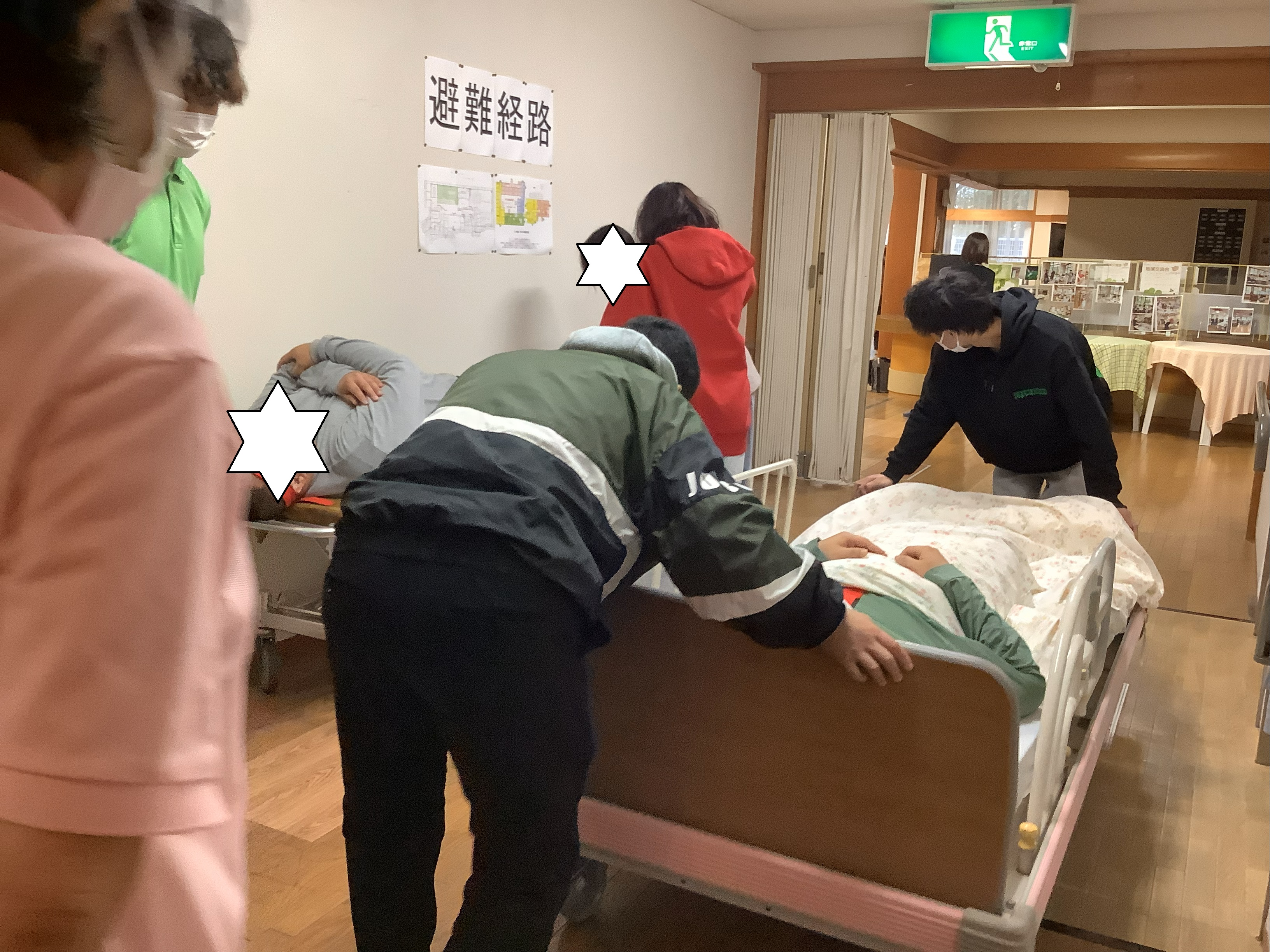 ストレッチャーで避難するチーム・車いすに乗って避難するチーム・ベッドごと避難するチーム。