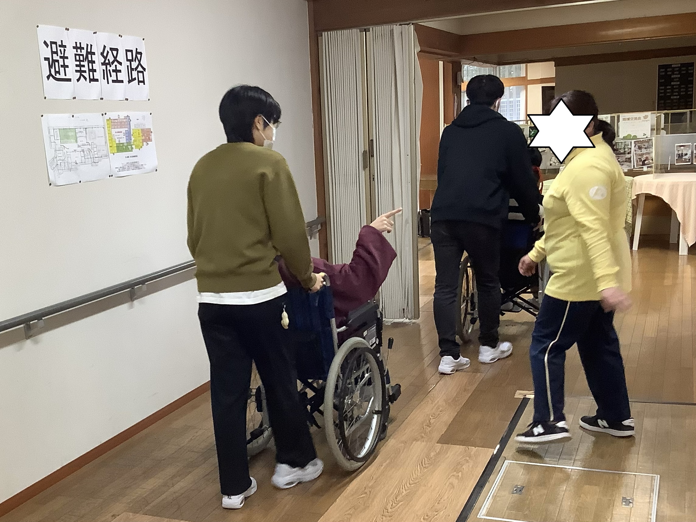 急いで避難することも大事ですが、しっかりと利用者さんに声掛けして安心してもらうことも大切。安心・安全に気をつけます。