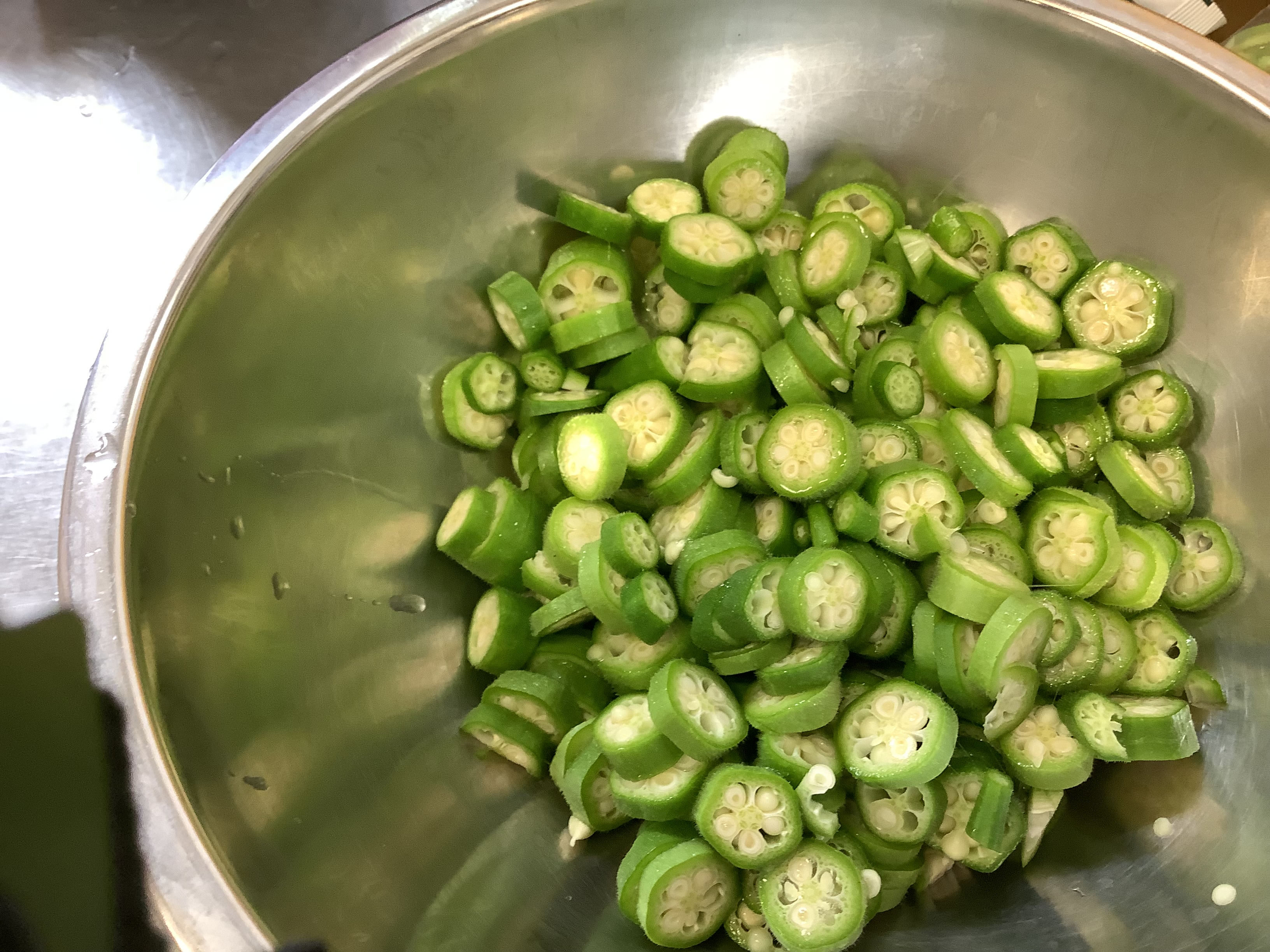 天ヶ瀬苑 2025.9.16 登りこども園さんからお野菜を頂きました! 先日交流した登りこども園の子どもたちから、オクラとナスをいただきました!子どもたちが育てたお野菜だそうです(*^▽^*)♪ お味噌汁にしていただきました~!!(∩´∀`)∩ とってもおいしかったです!ありがとうございました♡(*^▽^*)