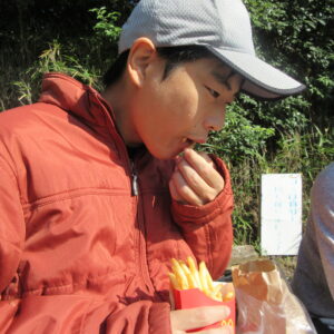 お天気に恵まれ、黄檗公園へ出掛けました。公園でハンバーガーセットを召し上がりました。美味しい物を外で食べると開放感があってもっと美味しいご様子です。
