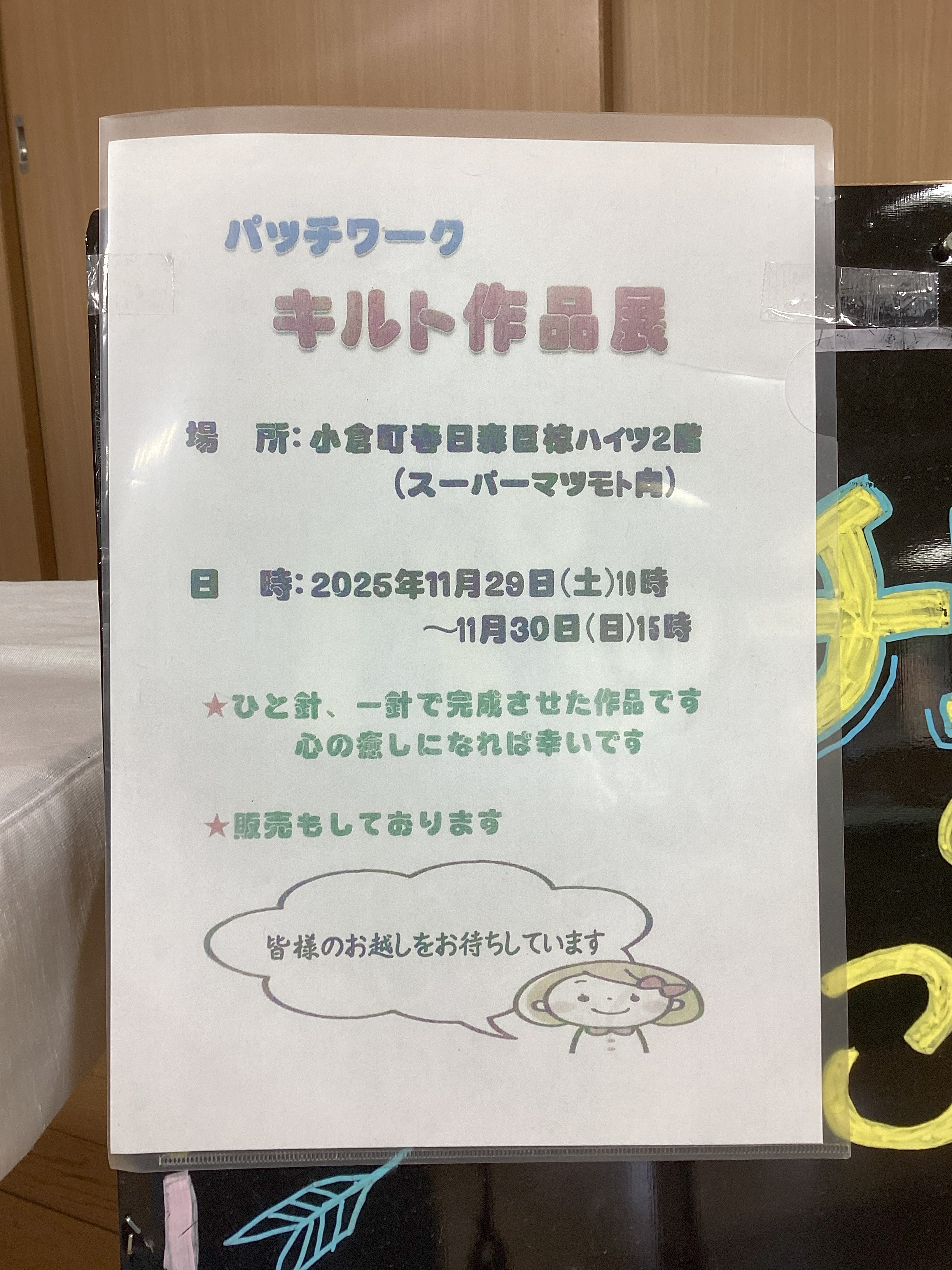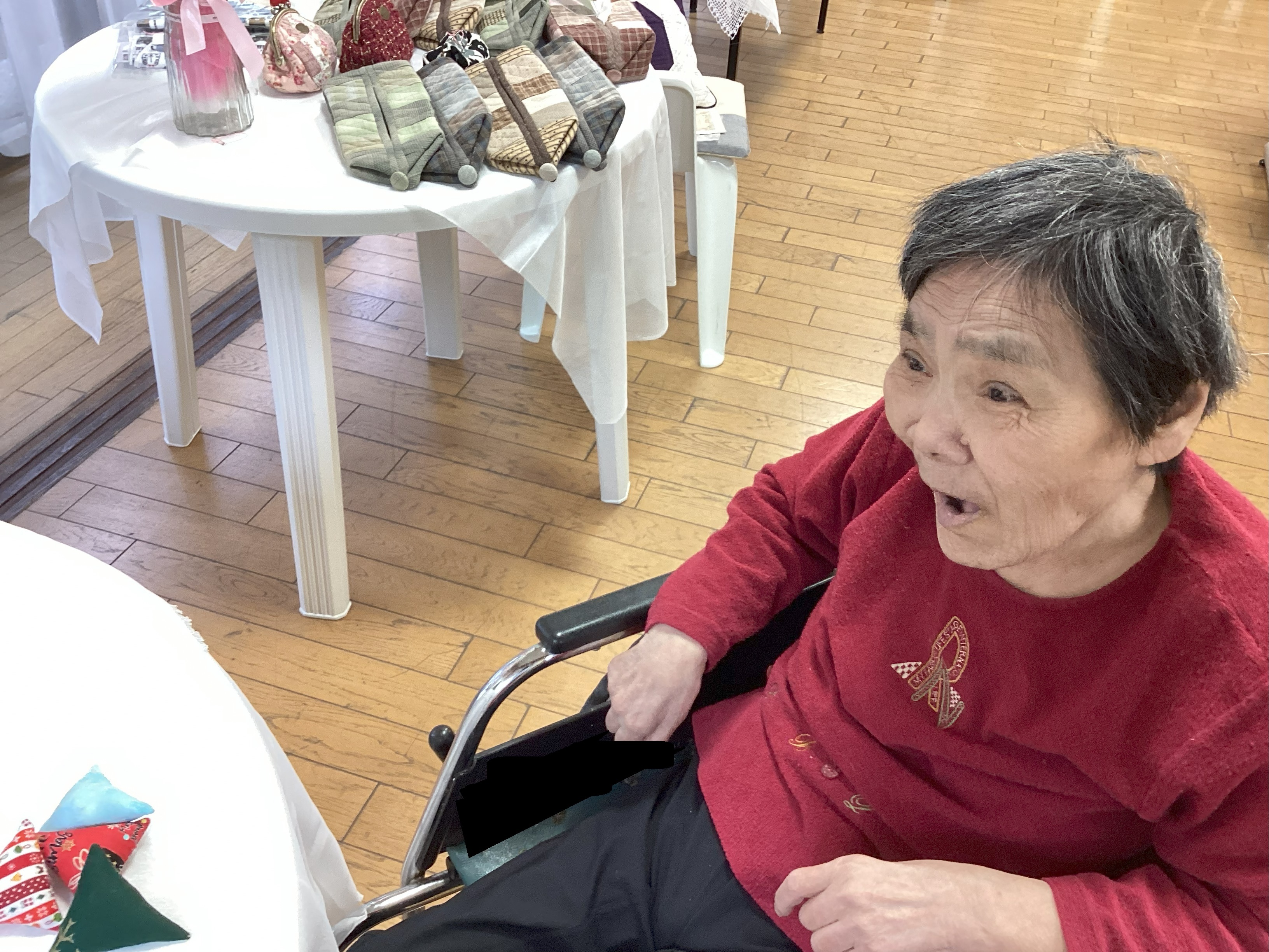 職員のおこなっているパッチワーク教室が、天ヶ瀬苑で作品展を開いてくれました(*^^*)
