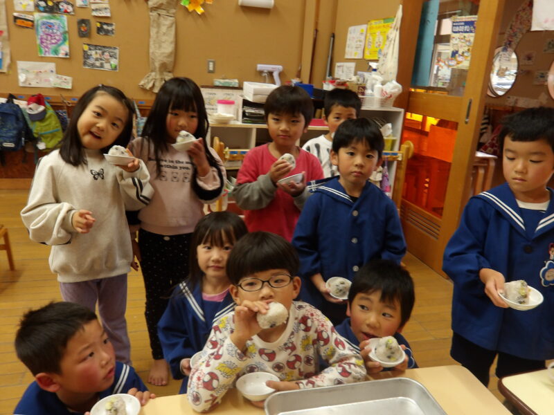 こうりゅう虹こども園 2025.11.13 黒豆おにぎりを食べました 先日こどもたちが苦労して皮を剥いた黒豆。今日のおやつは黒豆のおにぎりで大喜び。 とってもおいしくて、まだ半分は冷凍庫にあるそうで、2回目も楽しみ。