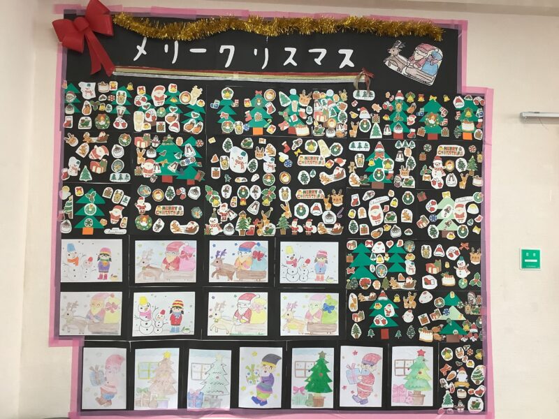 クリスマスのシールを利用者さんに自由に貼ってもらいました。壁が賑やかに明るくなりクリスマスが待ち遠しくなります♪