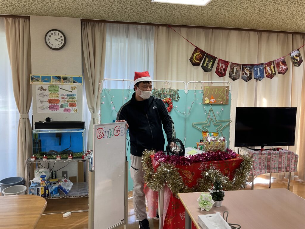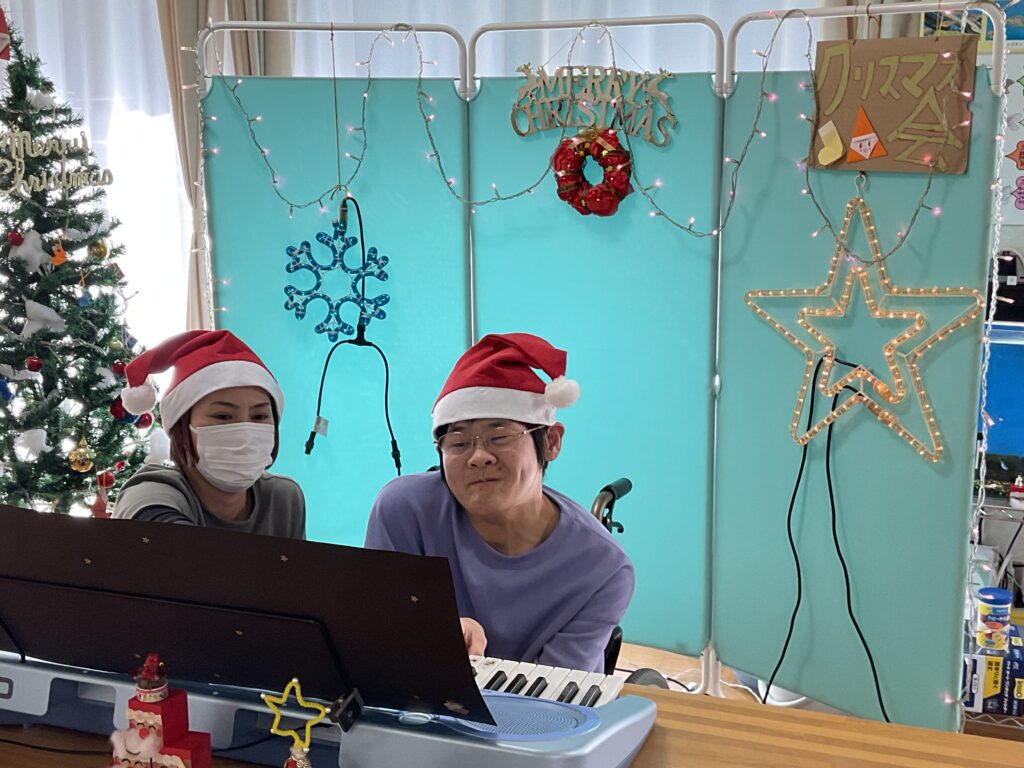 【天ケ瀬寮デイサービスセンタークリスマス会2025】を楽しく行ないました♬本日の利用者さんによる、演奏の曲名は…