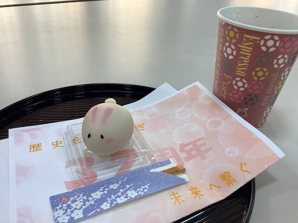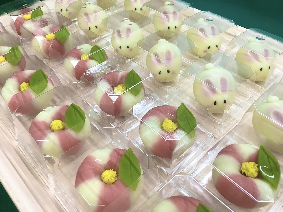 この日のためにお願いして作って頂いたねりきり。紅白という意味で椿とウサギです。