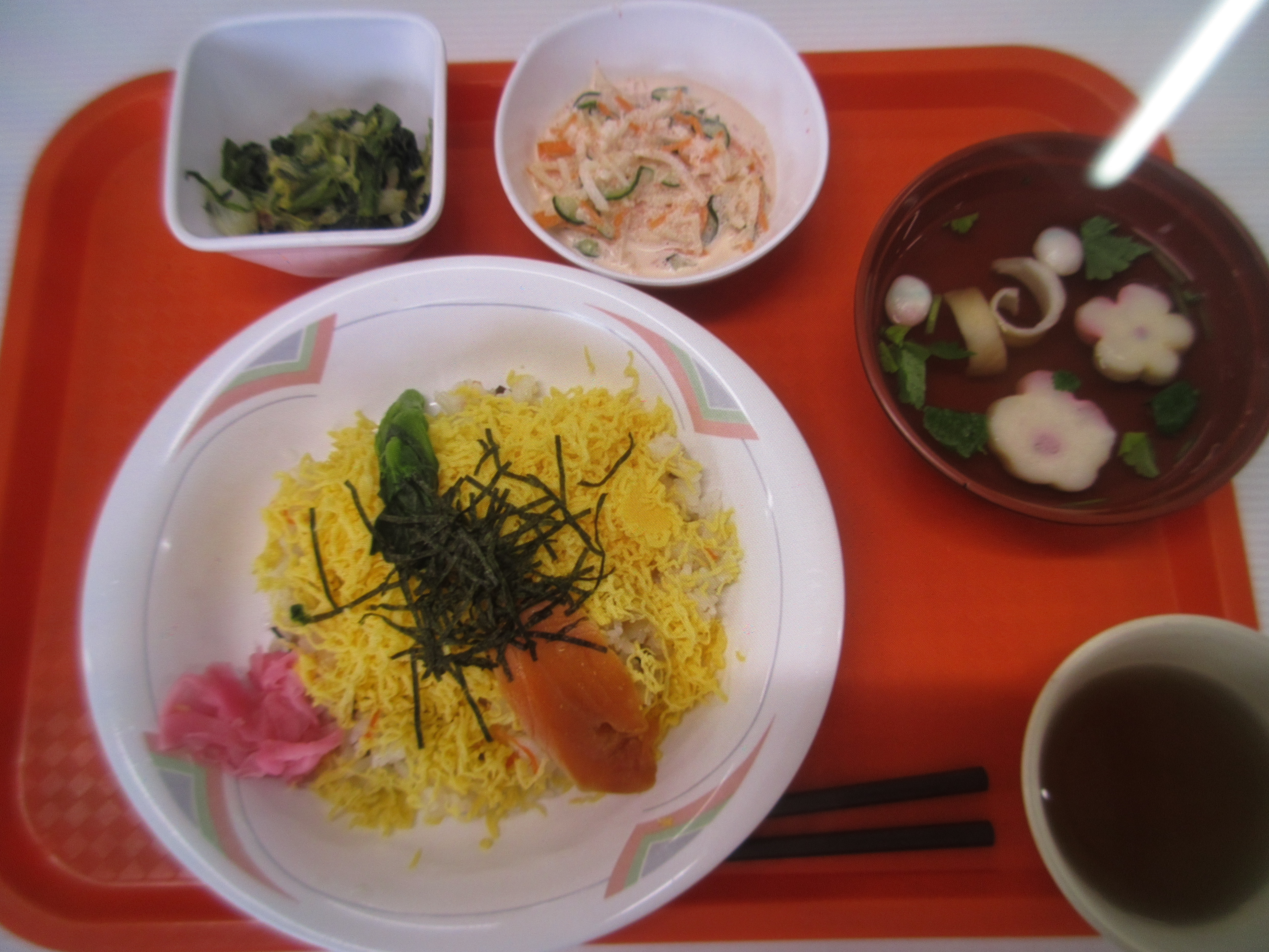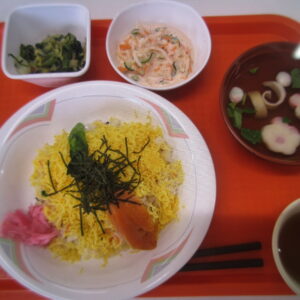 天ヶ瀬ワークスあすなろ 2026.3.3 ひな祭り こんにちは!天ケ瀬ワークスあすなろです(^_^)/ 投稿が久しぶりになり申し訳ありません。 今日は3月3日ひな祭りです☆彡 あすなろでも給食がちらし寿司でした! ひな祭りにちらし寿司を食べる理由は、華やかな見た目で春の訪れを祝い縁起の良い具材を使い 子供の健康と成長を願うためだそうです(*^^*) ひなまつりという事であすなろ女子の皆さんもパシャリ 皆さんで仲良く本日もお話をされていました😊 イベントはなんだかうきうきしますね💕