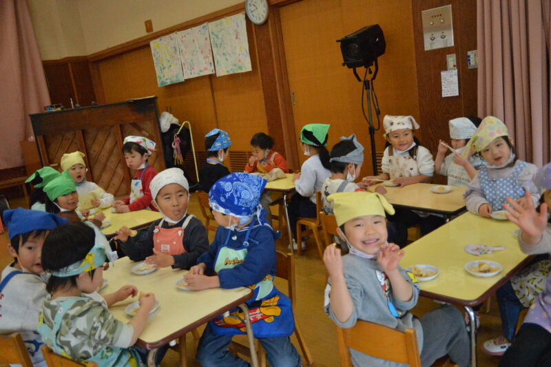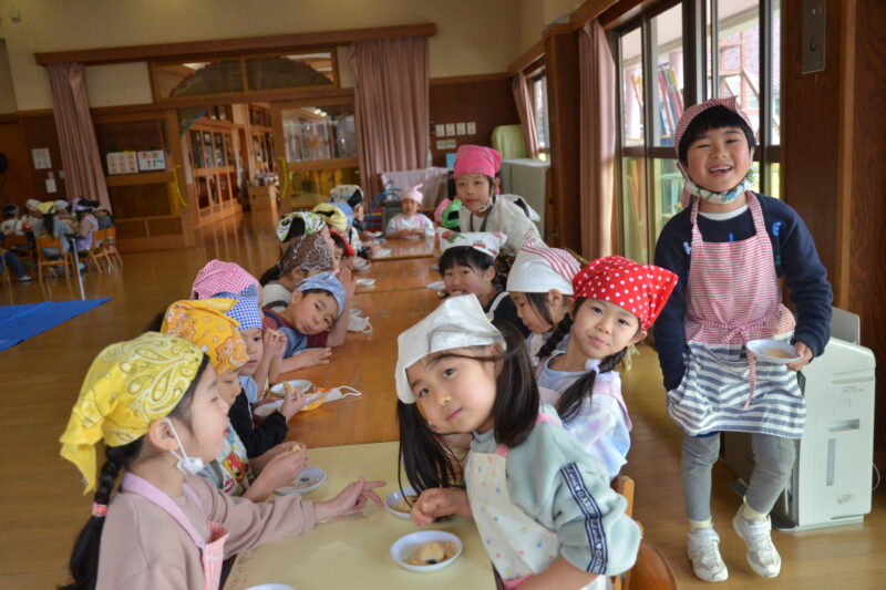 自分たちが育てたもち米での餅つき大会、5歳児たいよう組にとってあと少しの園生活の楽しい思い出がまた一つ増えました。