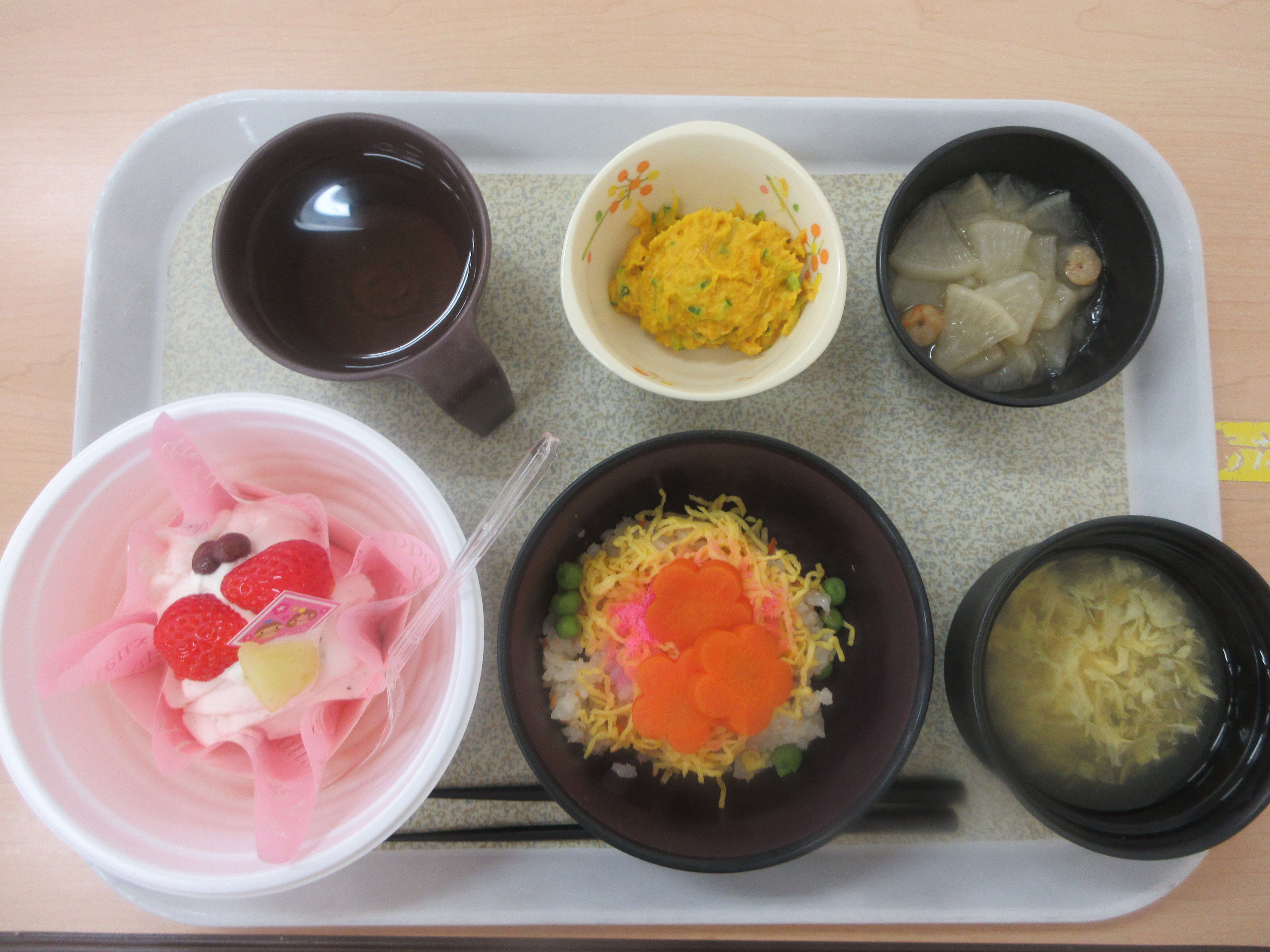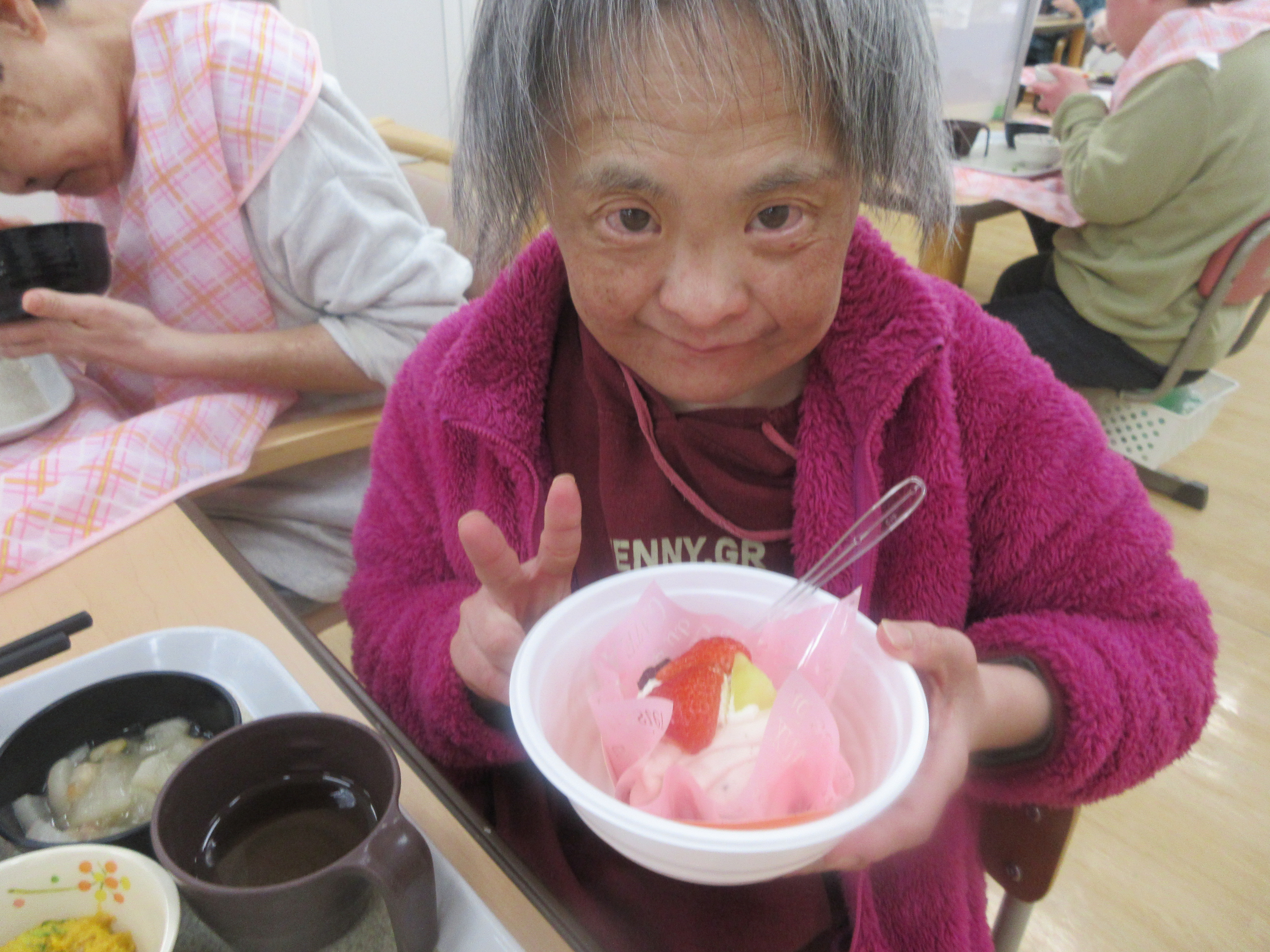 法人本部 2026.3.18 少し遅くなりましたが 桃の節句 女性の幸福を祈るために行われるひな祭り。美味しい物をいただくと、いつもより少し幸せを感じるきぼうの家の女子です。しかし、ジェンダーレスを目指すきぼうの家は、男性も一緒に美味しい物をいただき、幸せを分かち合いました。