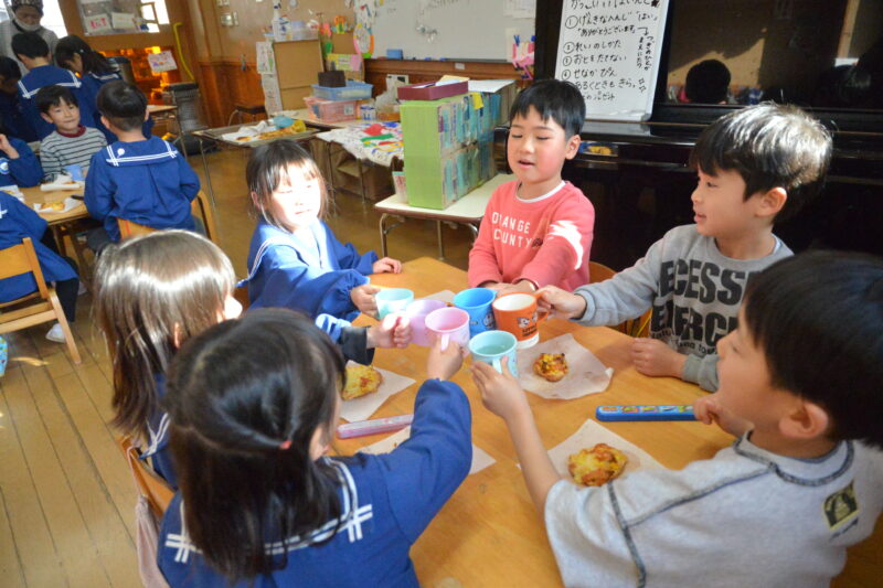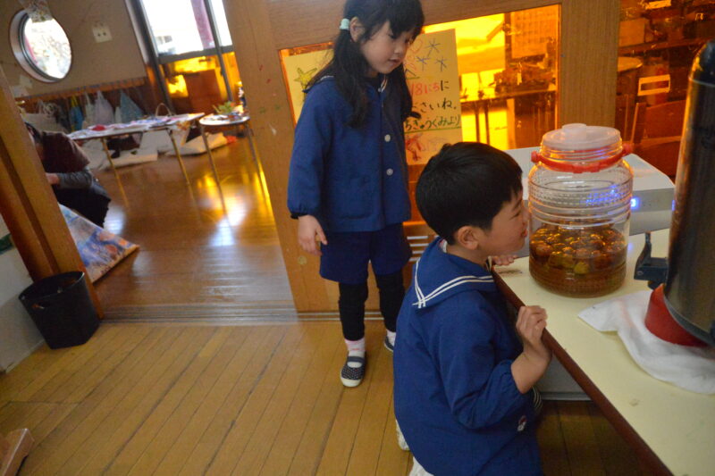 6月に子ども達と作り、「いつ飲むの」と注目の的だった梅ジュース。やっと今日乾杯することに。「いっぱい飲みたい」「ちょっとがいい」と初めての梅ジュースに戸惑いのあるお子さんも。