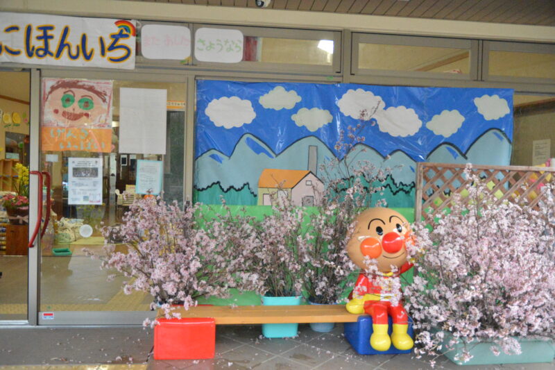 園の玄関は素敵な写真スポットになりました。久美浜の桜はまだちらほら咲きですが、この桜は満開で一足早く花見が出来ます。