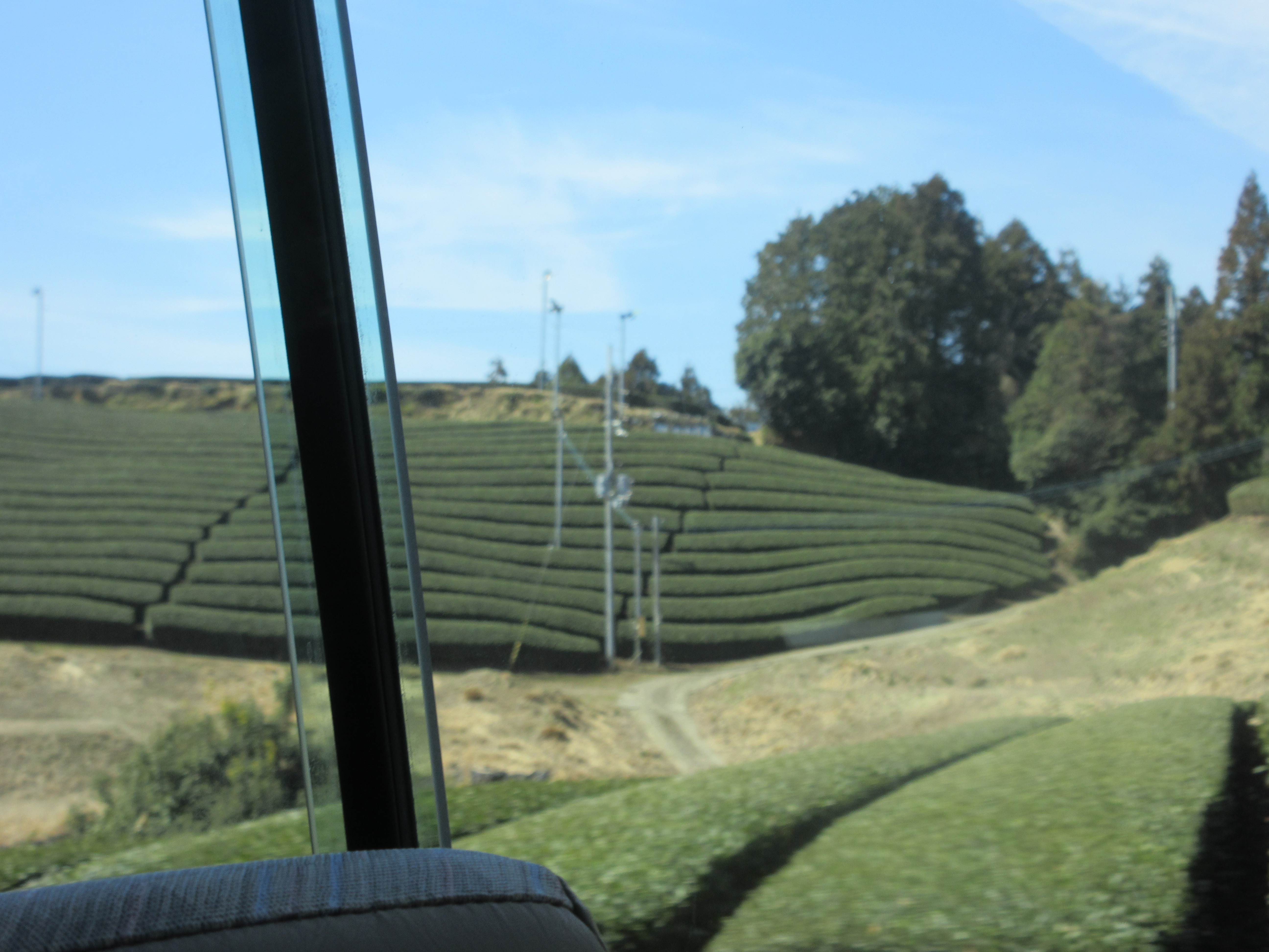 法人本部 2026.4.4 バスドライブ 和束町 きれいな畑が広がります。車窓から見える茶畑と青い空に圧巻です。今日は大型バスでのバスドライブです。お天気にも恵まれ美しい風景をご覧でした。いつものメンバーとのドライブですが、バスに乗り込むと何故だか気分が上がってきます