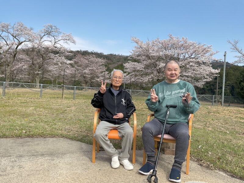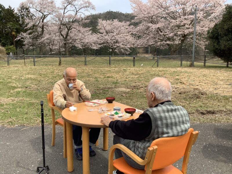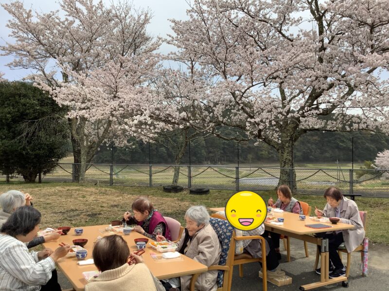 あけぼの荘 2026.4.8 みんなでのんびり花見日和♪ あけぼの荘の桜も満開となりました。利用者の皆様に桜を楽しんで頂くため、花見にドライブで近くの公園に行ったり、天気の良い日に外の空気を吸いながらお花見ランチをしたりと春の訪れを楽しんで頂けました。